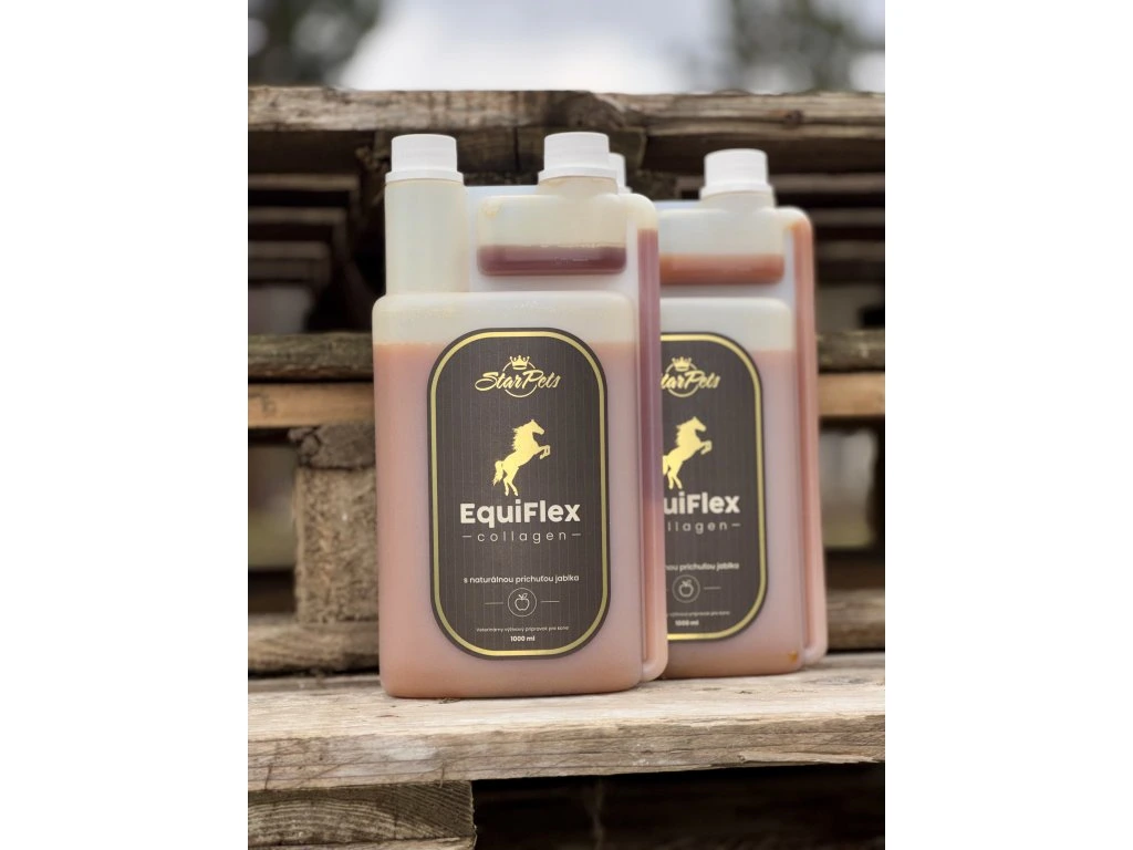 Veterinárny prípravok. EquiFlex Collagen je tekutý výživový doplnok pre kone, obsahujúci kombináciu výživných látok, ktoré sú potrebné na podporu, výživu a regeneráciu kÍbových chrupaviek, väzov a šliach, ktoré svojím synergickým účinkom möžu napomáhat' posilneniu resp. regenerácii klbového väziva. Odporúčame podávat' pri problémoch s pohybovým aparátom a to najmä pri poúrazovej a pooperačnej starostlivosti, znížení hybnosti nosných kÍbov, pre staré kone aj vysoko zat'ažované koňe pri športových výkonoch. Prípravok je dobre tolerovaný.