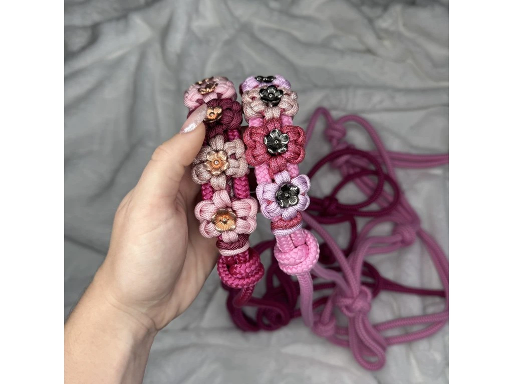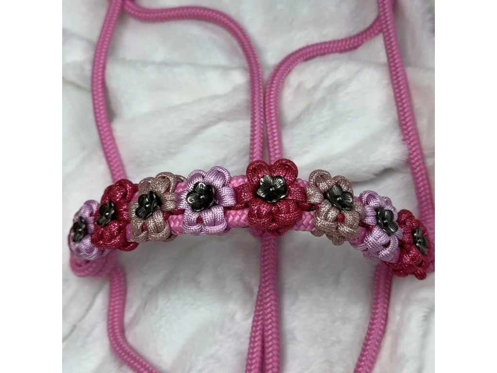 Jedinečná ručne vyrábaná parelová ohlávka pre koňa vo farbe Rose pink s kvetinovým vzorom. Doprajte svojmu koňovi výnimočný doplnok, ktorý vyniká originalitou a precíznym spracovaním. Táto ručne vyrábaná ohlávka je výsledkom poctivej práce a dôrazu na každý detail.