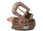 Westernový opasok s trojdielnou vymeniteľnou sponou. Vyrobený z hovädzej kože, zdobený kamienkami a cvočkami.